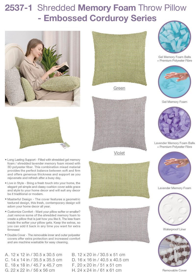 Home > Product > Travel & Household Item > 2537-1 Shredded Memory Foam Throw Pillow - Embossed Corduroy Series