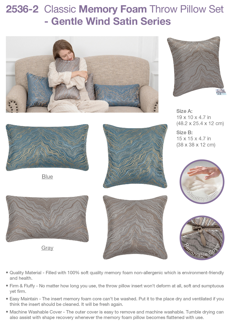 Home > Product > Travel & Household Item > 2536-2 Classic Memory Foam Throw Pillow Set - Gentle Wind Satin Series