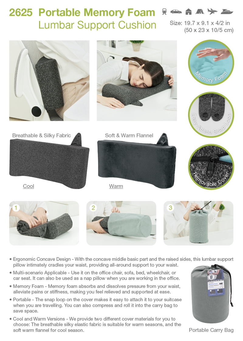 Home > Product > Car & Office Cushion > 2625 Portable Memory Foam Lumbar Support Cushion