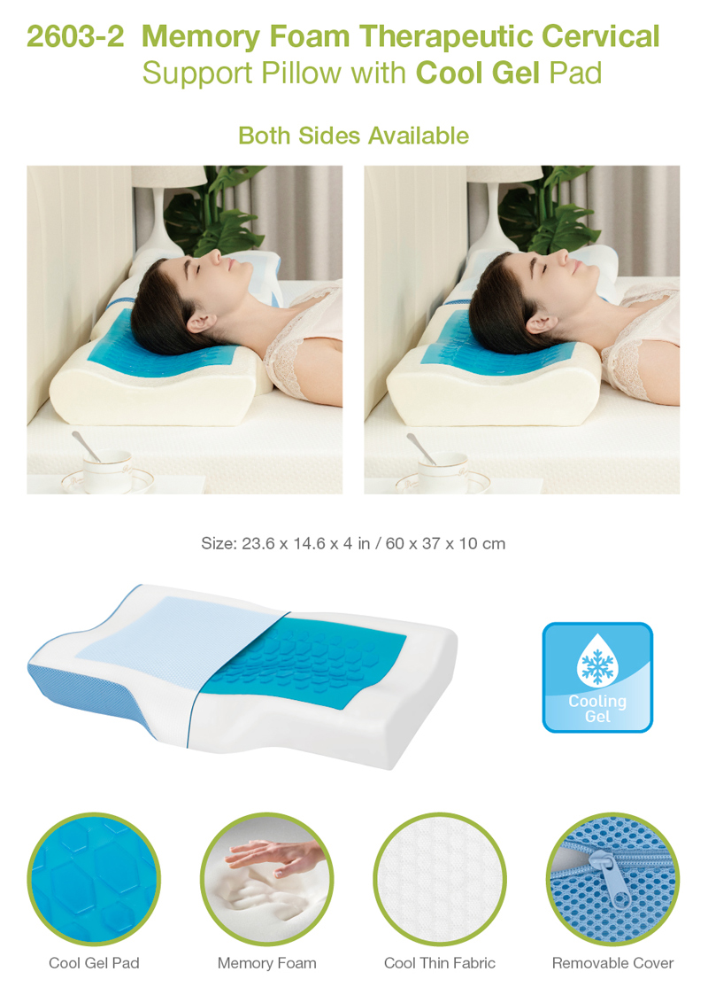 2603-2 Memory Foam Therapeutic Cervical Support Pillow with Cool Gel Pad