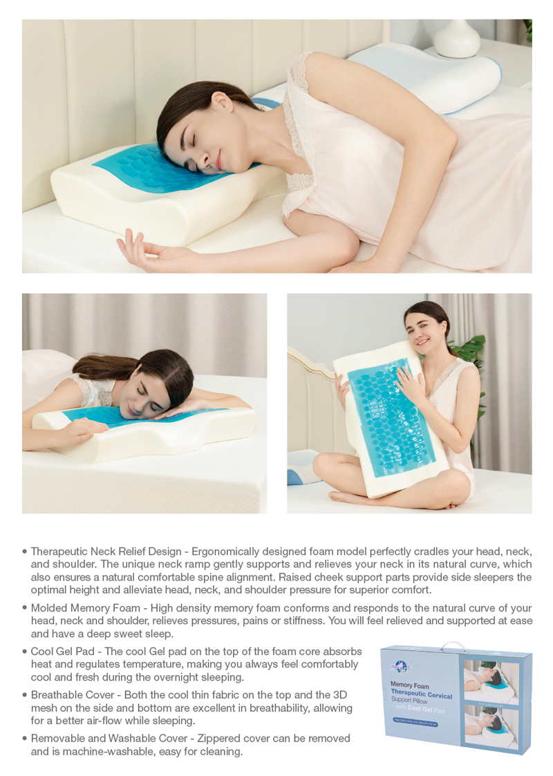 Home > Product > Bed Pillow > 2603-2 Memory Foam Therapeutic Cervical Support Pillow with Cool Gel Pad